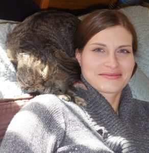 I tracked her down at the water bowl, while our fat black cat plops on the floor, meowing, “Feed me, feed me.”