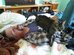 These animals may be small, but they are smart! A few days later the cat figured out the closet led to our bedroom and the door didn’t latch properly. That animal used her paw to pry it open and before I knew it, there she was again walking on top of me! Really!